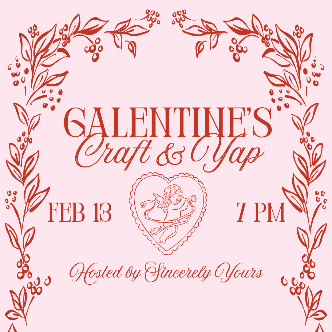Join us for a Galentine’s Day Craft & Yap to make cocktail napkin sets!